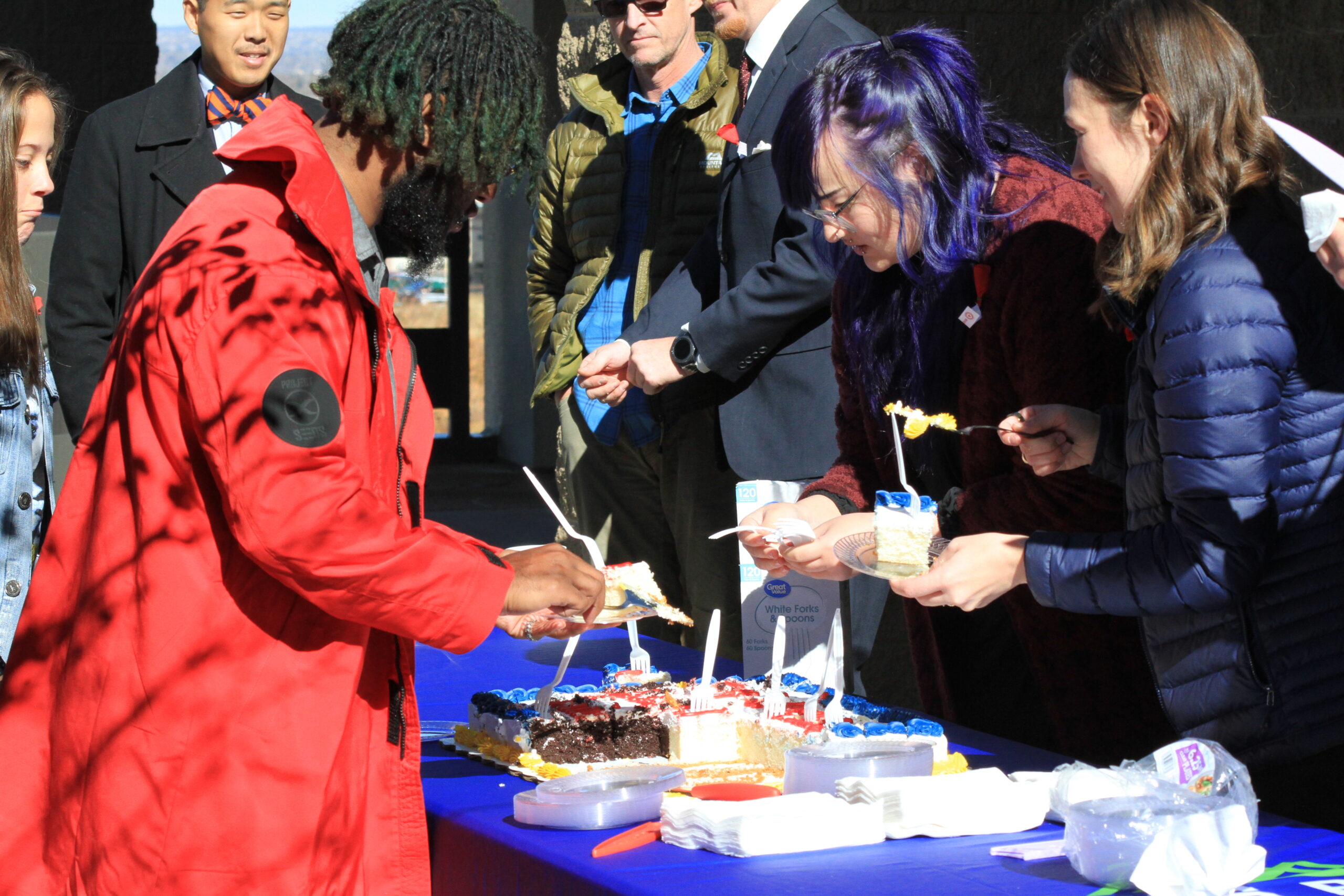 - PPSC community enjoying cake after the ceremony.