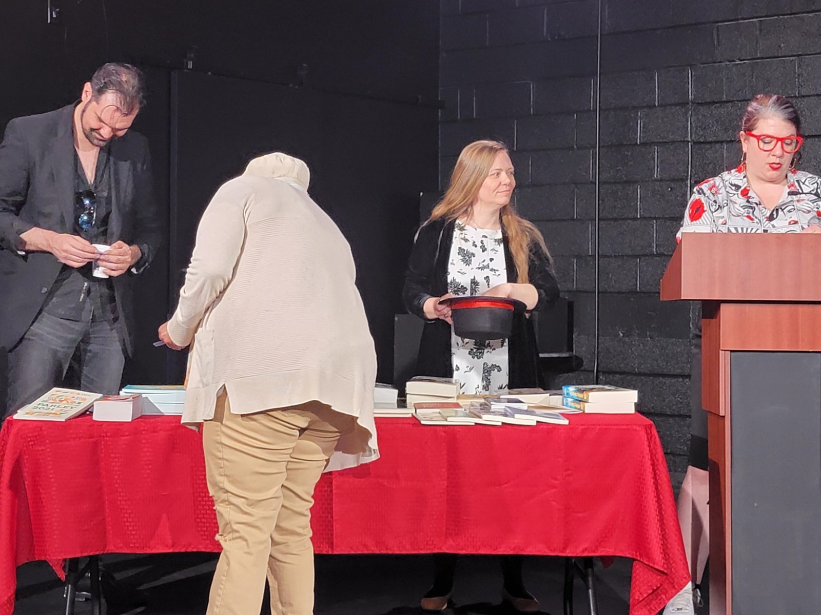 - Professor of English and Creative Writing, Brook Bhagat MCs the event.