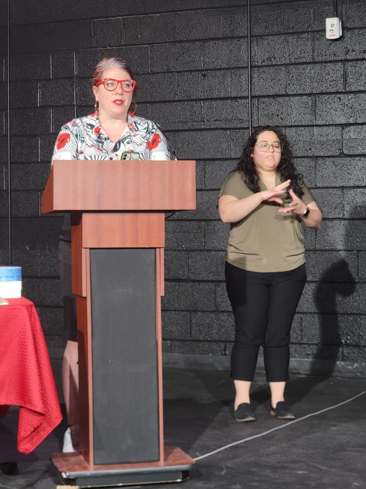 - Poet Laureate Ashley Cornelius asks the crowd to celebrate the art.